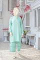 Look incredibly attractive this summer season in this gleaming lilac ensemble crafted with beautiful minimalist details on 100% Lawn fabric. Featuring solid plain long shirt with cigarette pants, shirt adorned with beautiful white pearls vertically placed on the front (from neck to daman), clean detailing on sleeves, and same coloured sober lace on the front and back daman, pants embellished with minor detailing and same coloured lace at the hem, ideal to get a sleek and smart look. This eye-soothing outfit is perfect for all summer get-togethers, formal and informal events, meetups, and official and traditional events.