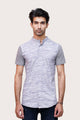 Posh Notch Blue Button Up Shirt is a versatile addition to your wardrobe this season. Features soft blue fabric, contrast pattern fabric on sleeves, grandad collar, and button-up style. This machine wash T-shirt is an ideal choice for a modern man.